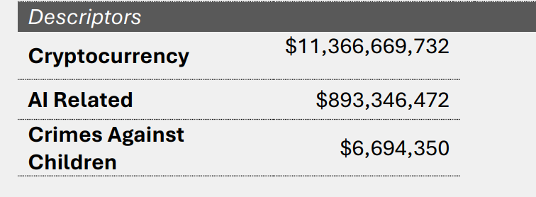 IC3 зафиксировал 181 565 жалоб, связанных с криптовалютой. Сумма потерь составила $11,366 млрд. Это на 21% больше по числу жалоб и на 22% больше по деньгам, чем годом раньше. Средний ущерб в этой категории достиг $62 604. Еще одна важная цифра: 18 589 заявителей сообщили о потерях свыше $100 тысяч.