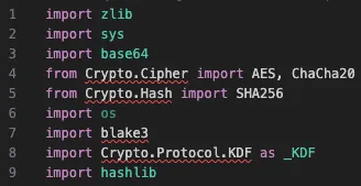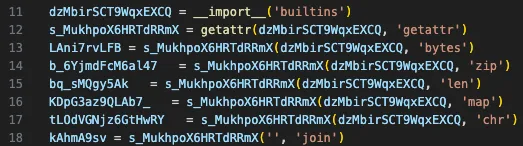 Следующим звеном цепочки был файл b5yogiiy3c.dll, но DLL он оказался только по названию. По данным InfoGuard Labs, это был Python-скрипт, замаскированный под библиотеку с расширением .dll, чтобы сбить с толку аналитиков и затруднить автоматическое обнаружение. Внутри находилось несколько слоёв запутывания кода, а полезная нагрузка разворачивалась поэтапно. Указывают исследователи и на сочетание Base85, AES, ChaCha20 и приёмов усложнения логики управления.
