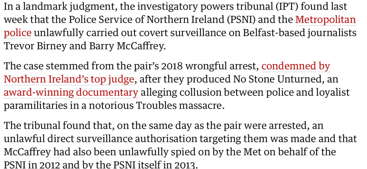 В Северной Ирландии двоих журналистов арестовали и поставили под слежку просто за то, что они сняли фильм про работу полиции. Не где-то в «тоталитарном аду», а в Великобритании.